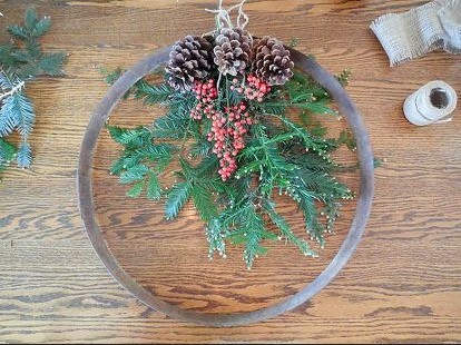 Kick off the holidays by creating your own festive wreath using a wine barrel ring. The merriment includes all materials, instruction, a glass of wine and charcuterie box.
